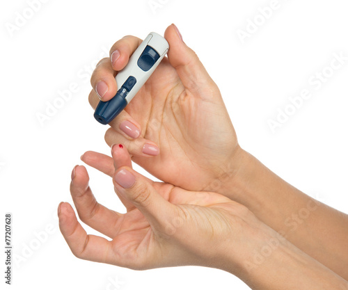Diabetes diabetic concept finger prick for glucose sugar measuri