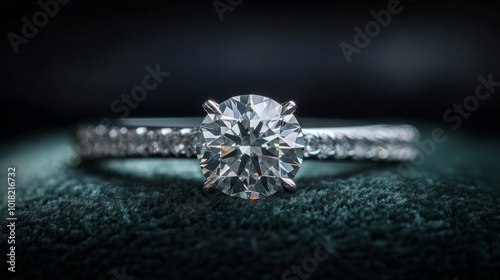 Diamond Engagement Ring with Pave Setting on Green Velvet