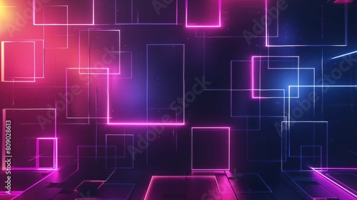 digital background with neon squares, Modern wallpaper with glowing vertical geometric shapes and lines