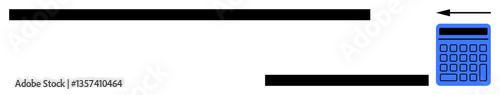 Digital calculator with blue keys beside horizontal black lines indicating input and result data flow. Ideal for math, finance, education, business, technology, problem-solving, logic. Flat simple