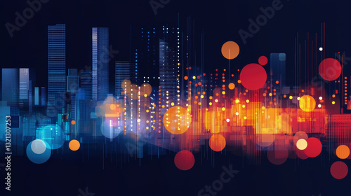 Digital cityscape with vibrant colors and data visualization elements