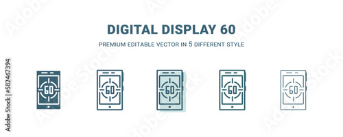 digital display 60 icon in 5 different style. Outline, filled, two color, thin digital display 60 icon isolated on white background. Editable vector can be used web and mobile