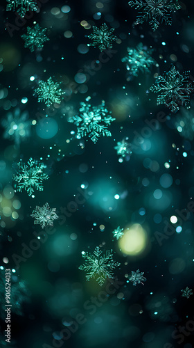 Digital green snowflake glitter pattern abstract poster background