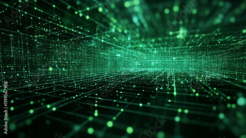 digital grid matrix abstract illustration dark green neon color palette, data visualization