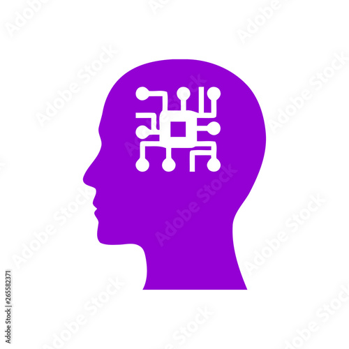 digital human head, brain, technology, head, memory, creative technology mind, artificial intelligence dark violet color icon