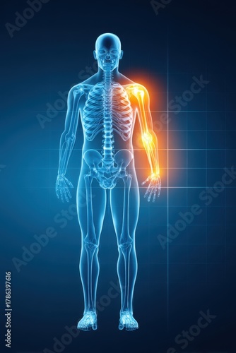 Digital Illustration of Human Skeleton with Highlighted Arm Joint