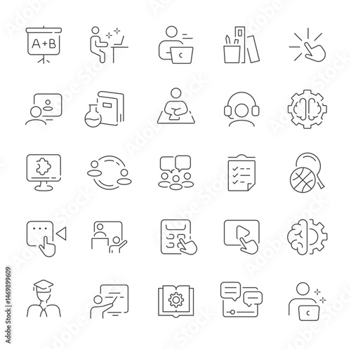 Digital learning icons depict education