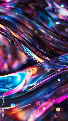Digital technology holographic curved glass texture poster background