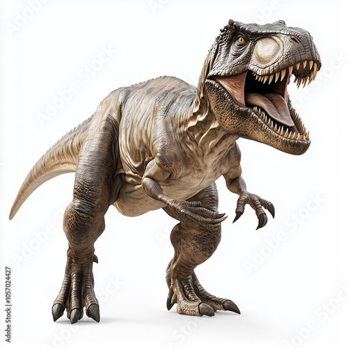Dinosaur: Tyrannosaurus rex with powerful jaws open, ferocious might of the t-rex