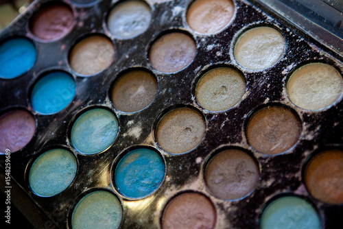 Dirty makeup palette with various colors