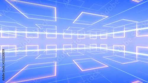 Disco club space illumination neon light room floor wall 3D illustration abstract background