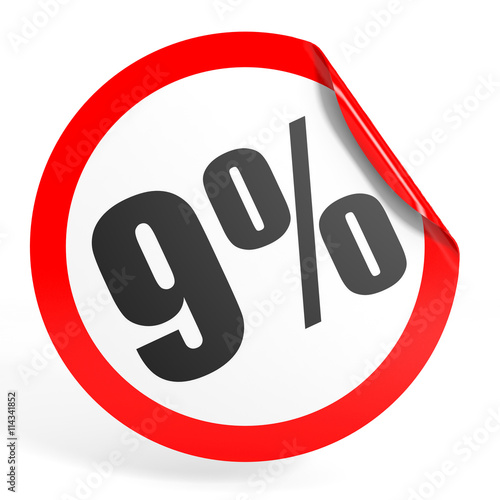 Discount 9 percent off. 3D illustration.
