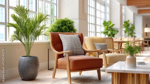 Discover a modern lobby design featuring stylish furniture, warm wood accents, and vibrant greenery creating a welcoming atmosphere for relaxation and social engagement in contemporary spaces.