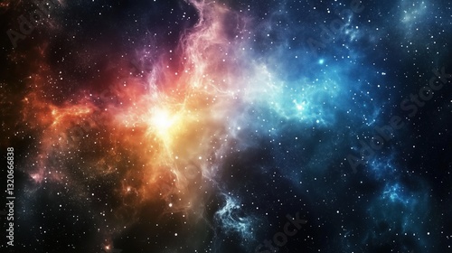 Distant blazar radiating intense light, surrounded by cosmic dust, a mysterious early universe phenomenon.