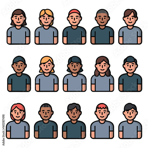 Diverse Flat Avatar Icons Set on White Background – Multicultural People Profile Illustrations for Web, App and UI Design