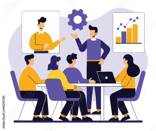 Diverse professionals collaborate remotely, sharing insights, and presenting project updates in a collaborative transparent session