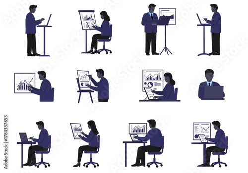 Diverse Professionals Presenting Data and Insights in Various Settings