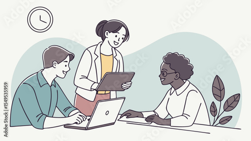 Diverse Team Collaborating on Project Using Laptop and Tablet.