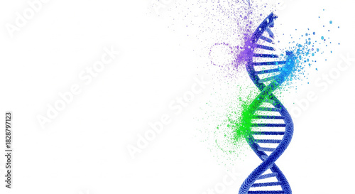 Dna Double Helix Exploding Into Colorful Particles on White Background