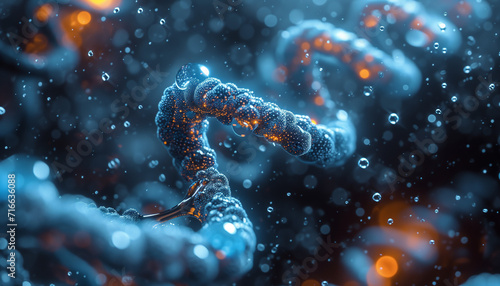 Dna structure, Cosmetic essence liquid bubble molecule inside liquid, blue color