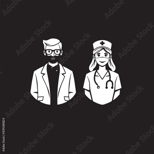Doctor and nurse avatar icon set vector design concept black and white illustration.