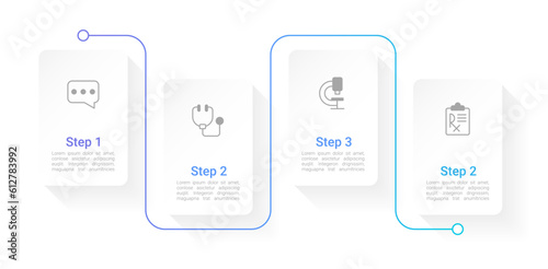 Doctor consultation infographic chart design template. Editable infochart with icons. Instructional graphics with 4 step sequence. Visual data presentation. Arial Regular, Bold fonts used
