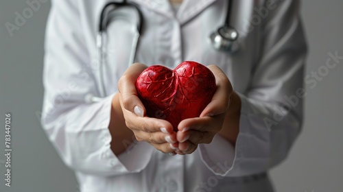 Doctor holding red heart shape in hands