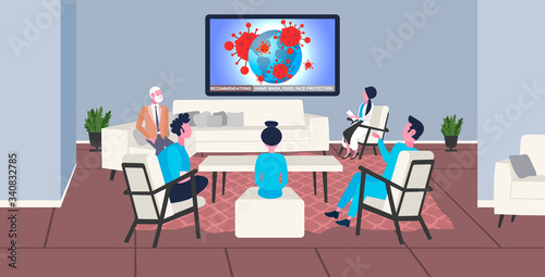 doctors team in masks watching breaking news 2019-nCoV flu spreading of world floating influenza virus coronavirus pandemic concept horizontal full length vector illustration