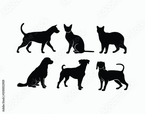 Dog and Cat Silhouettes Vector Graphics