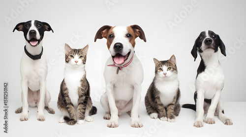 Dogs and cats sharing a playful moment together, harmony in unexpected friendship