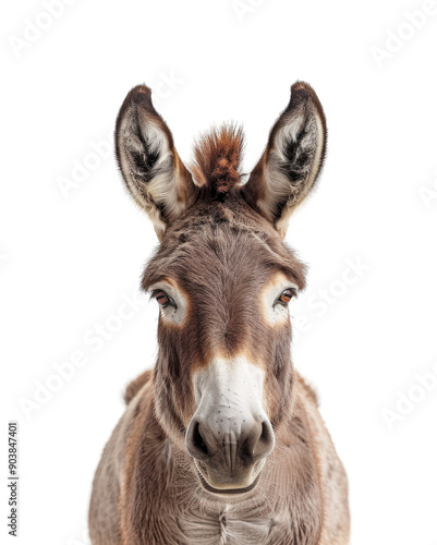 Donkey face head photo isolated on transparent background cutout PNG