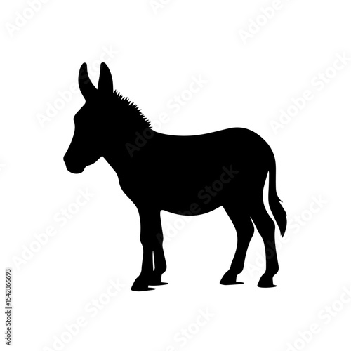 Donkey Silhouette Isolated on White Background – Farm Animal Vector Illustration