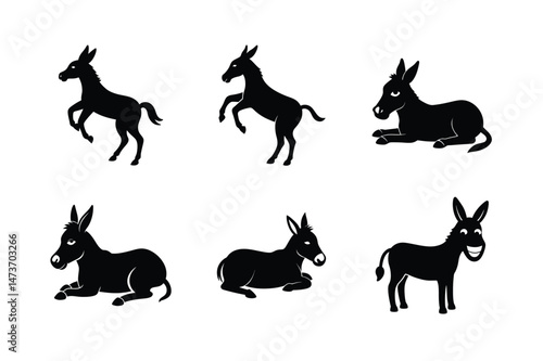 Donkey silhouette Vector bundle illustration, Set of Donkey silhouette