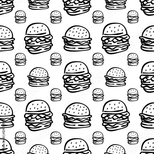 doodle burger pattern background. doodle fast food burger seamless pattern background. seamless pattern of burger in doodle style. Seamless Pattern of a Cheese Burger or Hamburger. hamburger pattern.