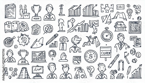 Doodle career icon set. Success winner, business goal, challenge hand drawn sketch line pen stroke style icon. Professional business career, goal sketch doodle drawn collection. perfect any project.