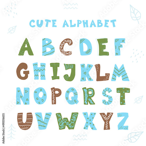 Doodle hand drawn style outline colorful letters of English alphabet, cute funny decorative font, lettering.