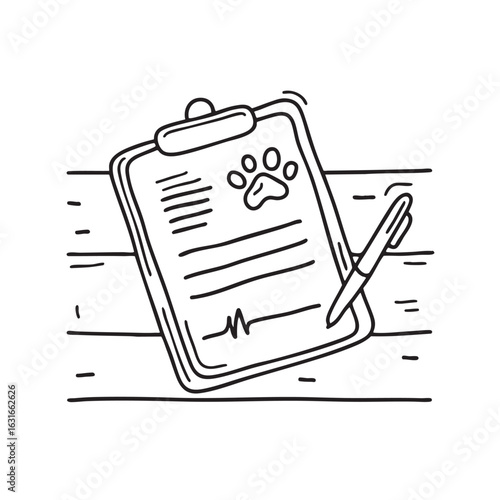 doodle illustration of a clipboard holding veterinary charts on doodle illustration of a desk