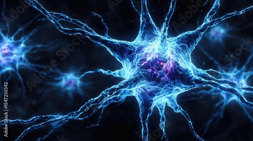 Dopamine pathway disruption leads to cognitive imbalance concept. Abstract depiction of neural connections illuminated in blue.