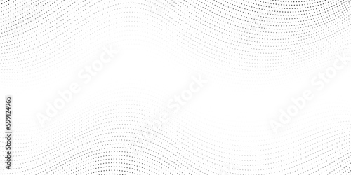 Dotted wave lines background. Abstract Halftone stripes texture. Warped and curved dashed lines wallpaper. Black and white vector design template