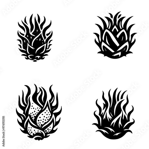 dragon fruit icon, dragon fruit silhouette, black dragon fruit on white background