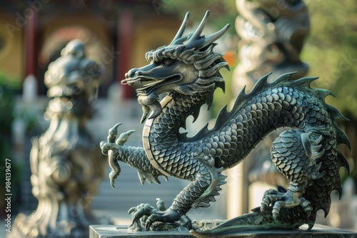 Dragon Symbol. Traditional Oriental Fantasy Design with Dragon Statue and Eagle Claws