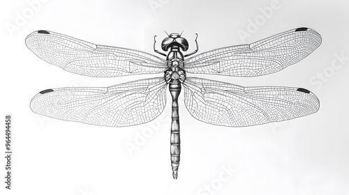 Dragonfly Wings from Dots and Lines: A dragonfly in flight, its delicate wings and elongated body drawn with a fine network of dots and thin lines.