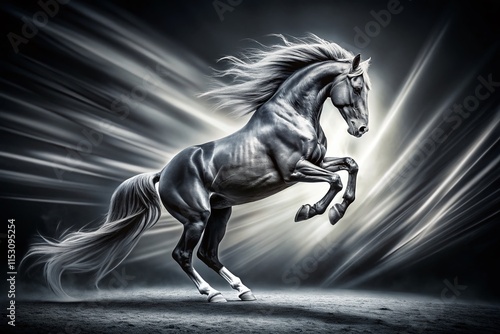 Dramatic Black and White Long Exposure Photo of a Rearing Horse - Artistic Illustration