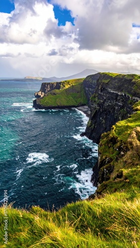 Dramatic coastal cliffs meet a churning ocean