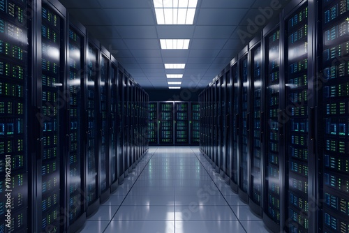 Dramatic image of data center with servers and storage units