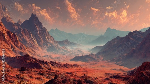 Dramatic Landscape of Mars Surface Under an Orange Sky