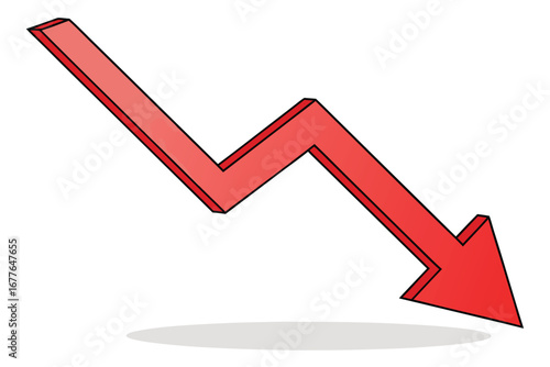 Dramatic Red Arrow Pointing Downwards Indicating Market Crash or Economic Downturn on Isolated White Background Concept Design