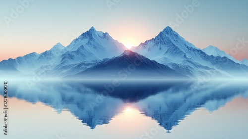 Dramatic sunrise reflection over majestic snow-capped mountains serene lake nature scene