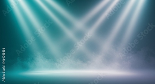 Dramatic Teal and White Stage Lighting with Fog Abstract Background for Design
