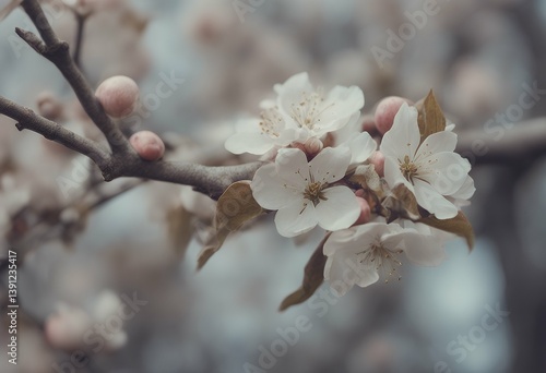drawn blooming flowers apple branches tree hand nature elegant blossom garden white design april bud pink botanical summer branch isolated card green flower bloom painting sakura vintage background